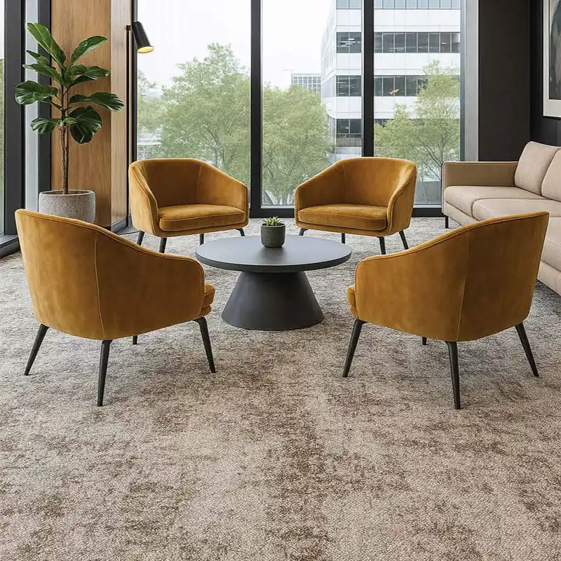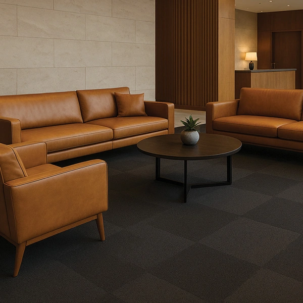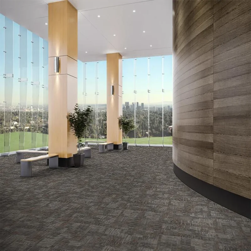 50×50 cm solution-dyed nylon carpet tiles built to combine strength, functionality, and timeless style.